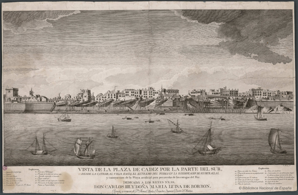 Una vista de Cádiz tomada desde el puerto de la ciudad No consta en el Repertorio de grabados españoles