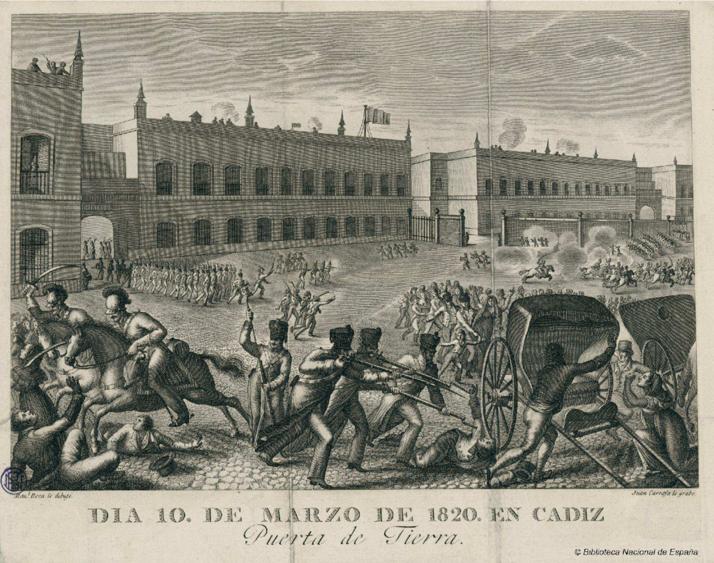 Día 10 de Marzo de 1820 en Cádiz, Puerta Tierra. Este trágico suceso, conocido como la "Matanza de Cádiz", marcó un punto de inflexión en el pronunciamiento liberal iniciado por Riego semanas antes.