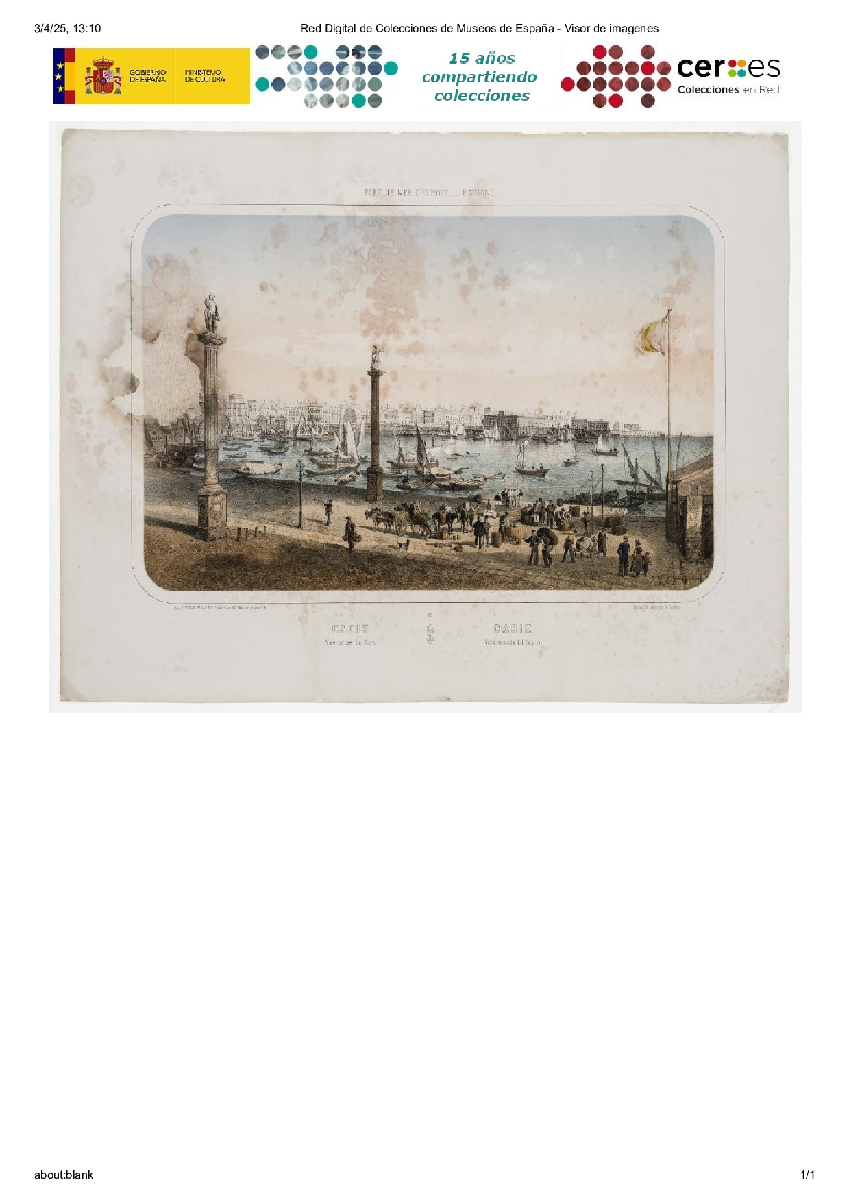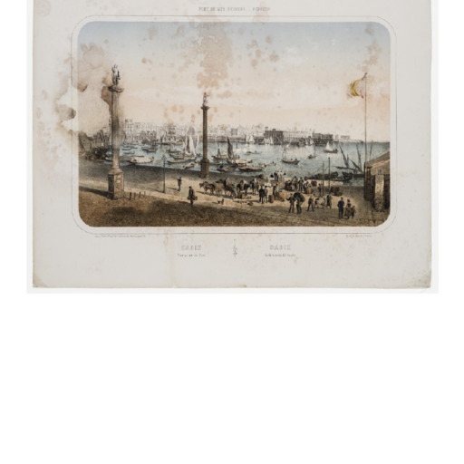 Litografía iluminada para la edición "Port d´Mer de Europe", editado por Turgis, importante impresor, establecimiento litográfico y editor parisino, que abrió sedes en Toulousse y Nueva York. Editó importantes colecciones de litografías, como ésta dedicada a los puertos de Europa, formada por 71 láminas, en las que se incluyó esta vista de Cádiz, n.º 23 de la colección.