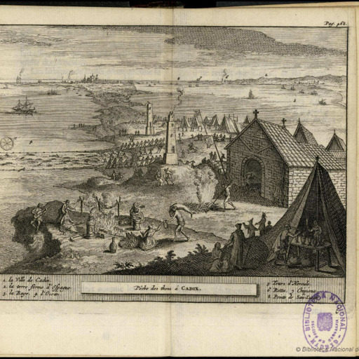 Inscripción en la zona baja central: Pêche des thons á CADIX .