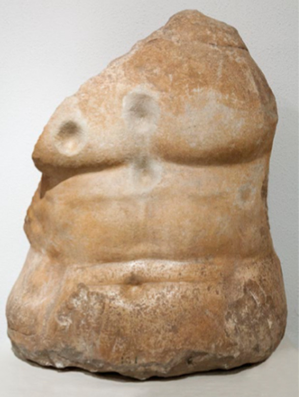 Se trata del fragmento del torso de una escultura colosal en la que destaca su musculatura. Es de mármol blanco y alcanza lo conservado una altura de poco más de un metro, desde su hombro izquierdo hasta aproximadamente la línea del pubis.