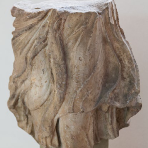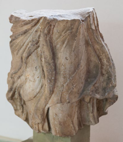 Se trata de un fragmento de escultura femenina de mármol desde la cintura hasta poco más abajo de las rodillas, cuyas vestiduras caen en pliegues irregulares que expresan movimiento y traslucen el modelado de la anatomía