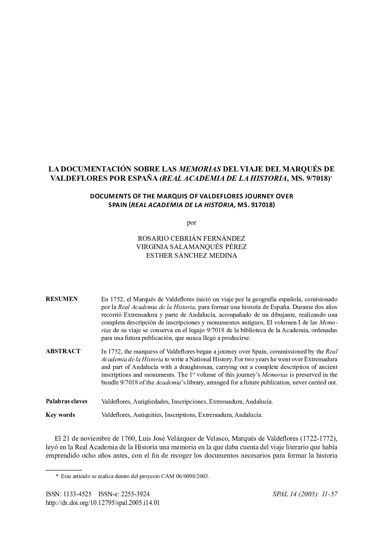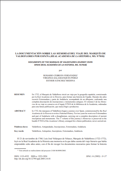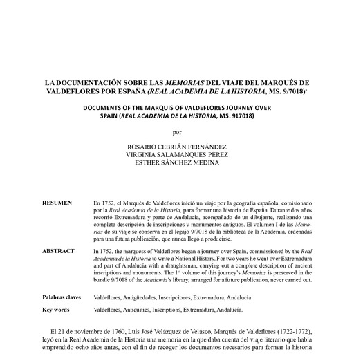 La documentación sobre las "Memorias" del viaje del Marqués de Valdeflores por España (Real Academia de la Historia, ms. 9/7018)
