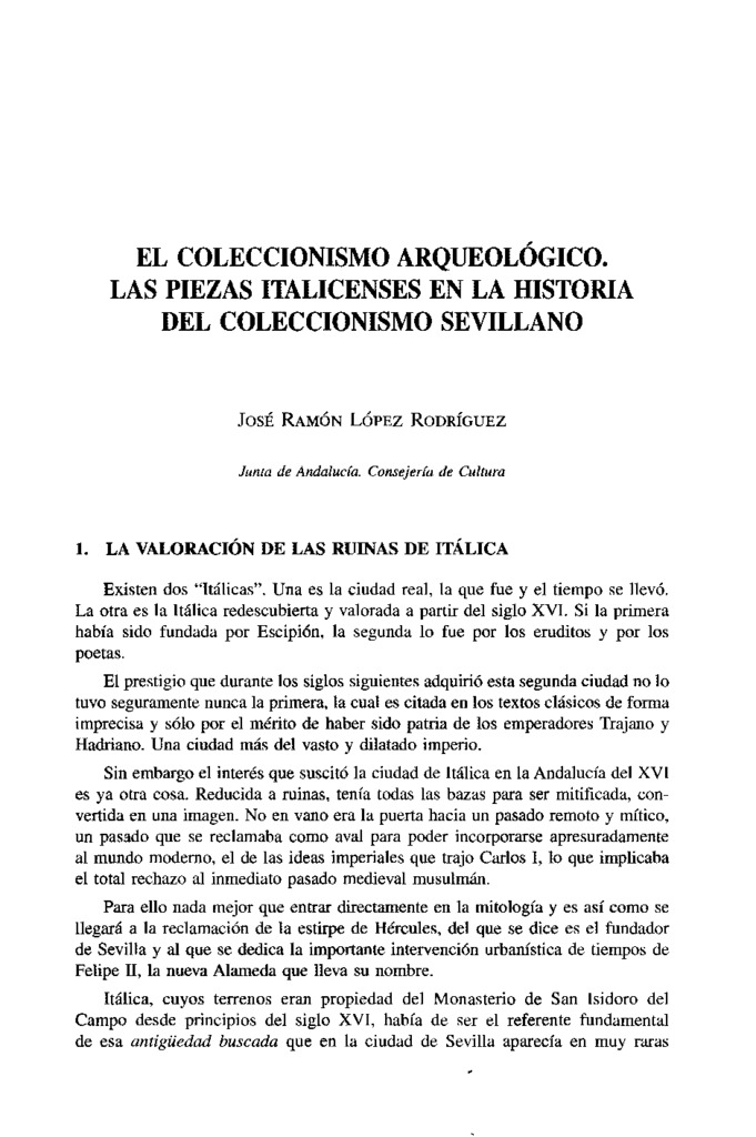 El coleccionismo arqueológico. Las piezas italicenses en la historia del coleccionismo sevillano -
